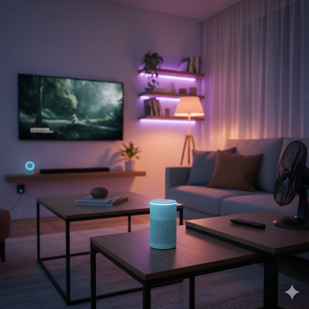 - Conforto e Praticidade: “Alexa, hora do filme” (Luzes apagam, TV liga, ar gela).