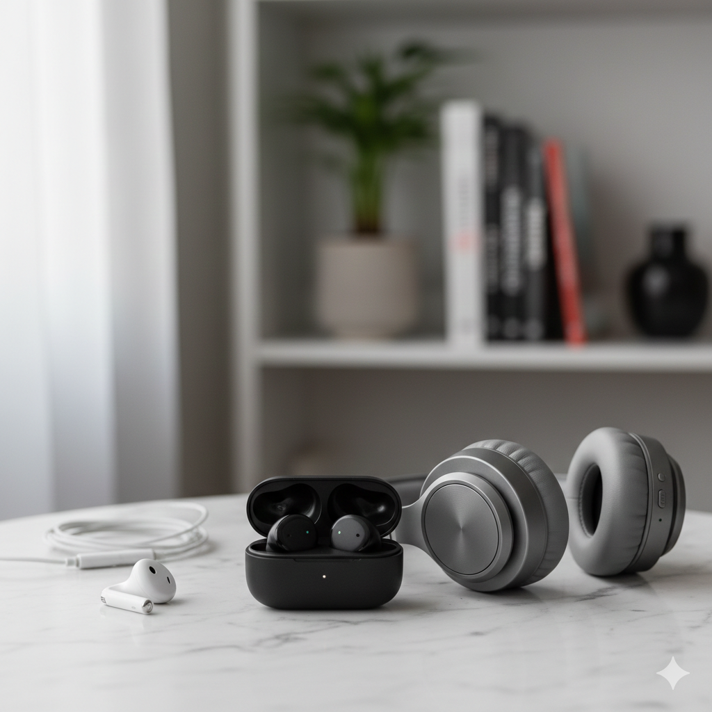 | Auricular (Earbuds) | Apoiam na orelha, não inserem no canal (Ex: AirPods padrão, fones antigos com fio). | Confortável para uso prolongado, permite ouvir o ambiente. | Pouco isolamento, vazamento de som, som com menos grave. |